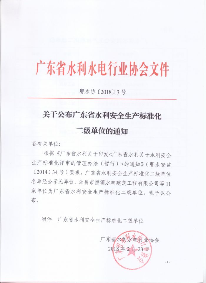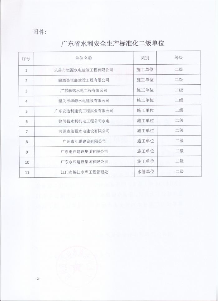我司承接的翁源跃进水电站、阳山县江英大风坳水电站有限公司通过安全生产标准化二级达标